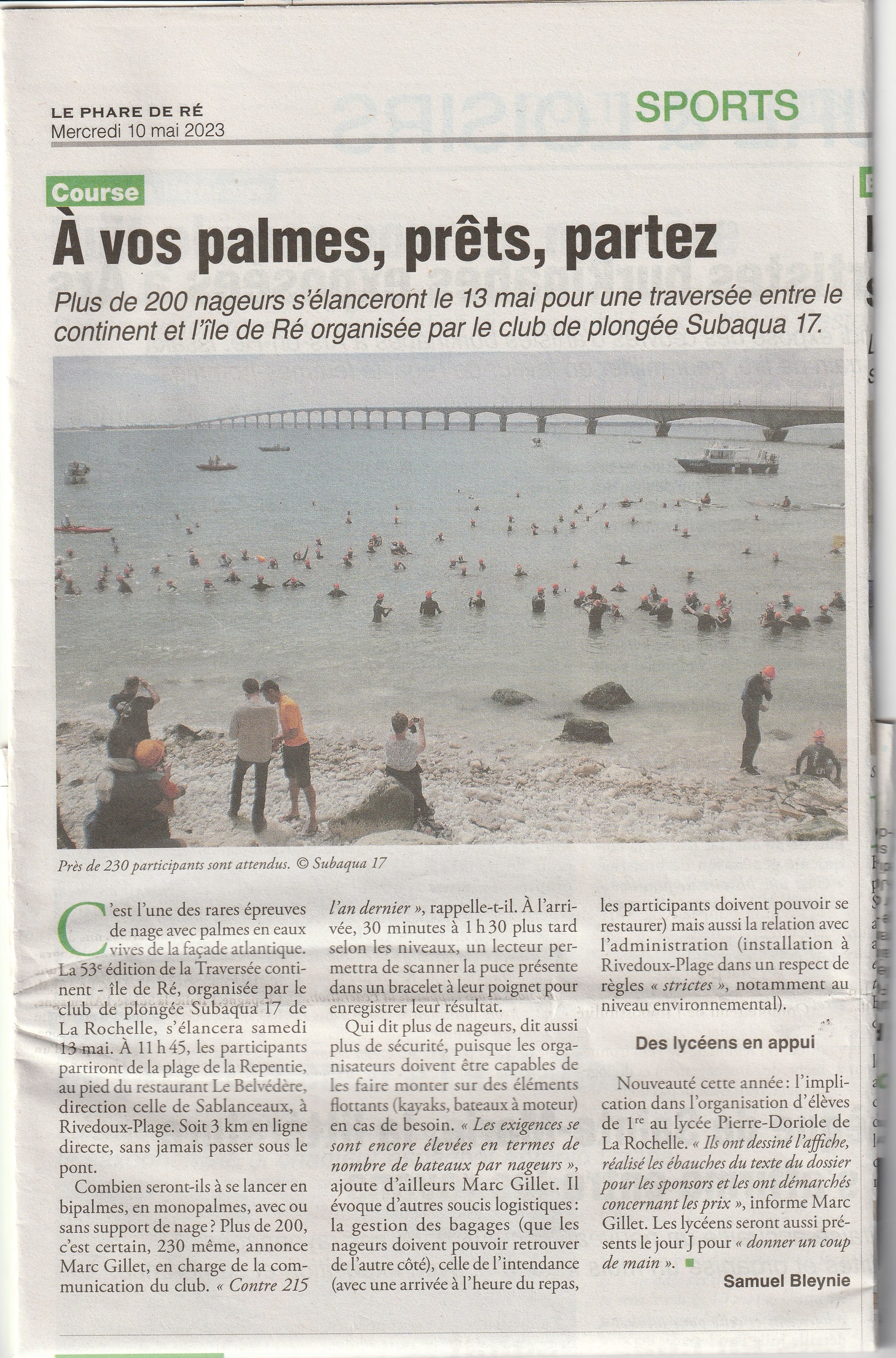 Et maintenant : A vos palmes, prêts, partez ... (comme l’écrivait Le Phare de Ré en titre de son article sur l’édition 2023).